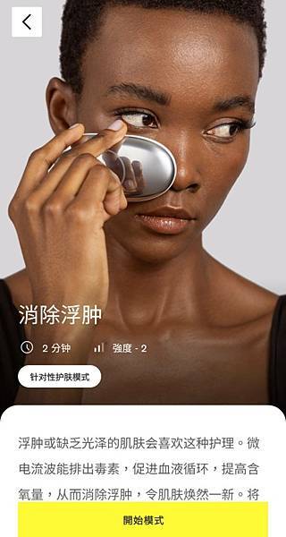 啟動美容儀後可以用內建的【緊緻模式 The Lift】,這是不用下載APP直接開機就有的模式